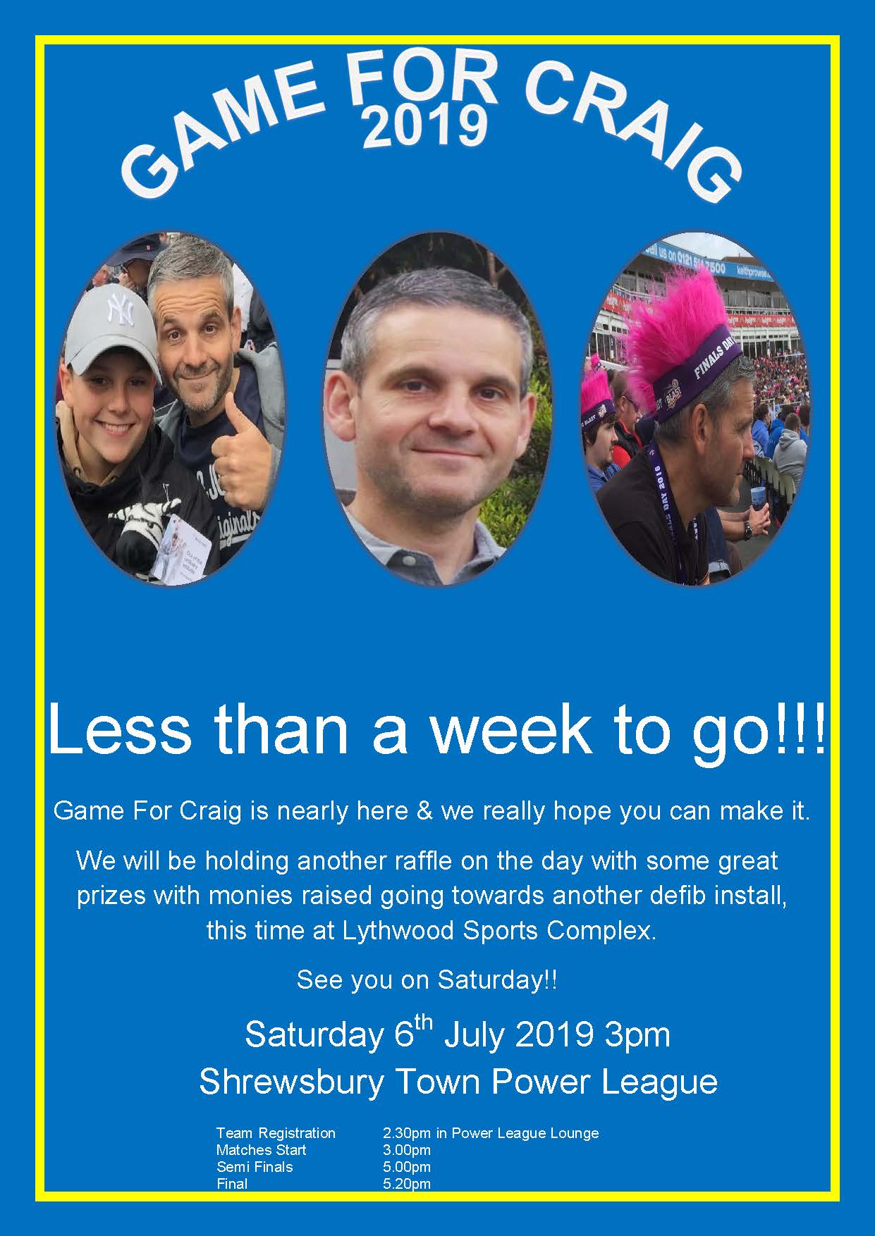 Game For Craig is a 5-a-side tournament in honour of a local football hero.  The organisers have offered to fundraise for a public defibrillator unit for the Lythwood site which the Parish Council will maintain.  Please give them your support.