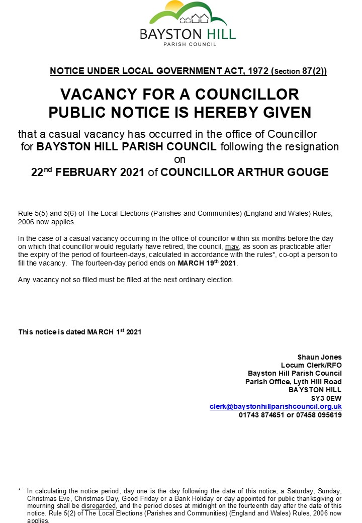 Vacancy Councillor